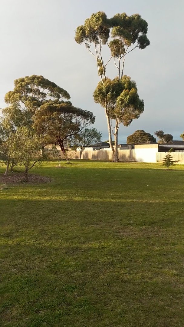 International Gardens Reserve Fenced Dog Park in Australia provides a versatile outdoor space for canine exercise and socialization. The facility features a dedicated, securely fenced off-leash enclosure characterized by lush, well-maintained green grass and a smooth paved walking path around its interior perimeter. Within this area, a modern stainless-steel dog water fountain is available on a concrete pad to keep pets hydrated. Beyond the primary fenced section, the reserve offers expansive open fields with a mix of natural and dry grass, ideal for long-distance running and play. The park's infrastructure includes a large sheltered area with benches for owners to rest, and tall light poles suggest the area is usable during low-light conditions. While mature eucalyptus trees offer patches of natural shade, much of the vast open space remains unshaded. For families, a children's playground with climbing equipment and a basketball hoop is located in the adjacent parkland. The perimeter is secured with sturdy black chain-link fencing, ensuring a safe environment. Overall, the park provides a clean, spacious, and well-equipped environment for the local community.