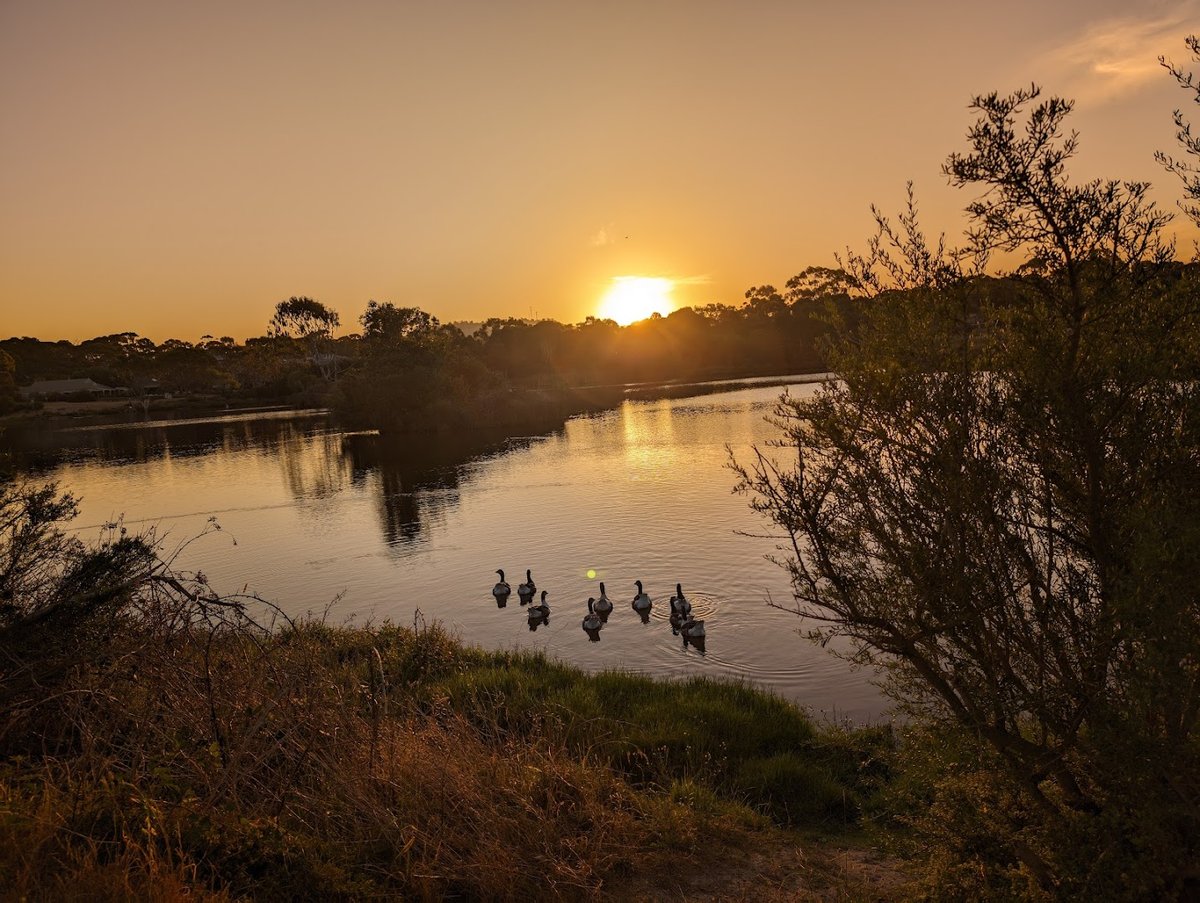 Sunbury Recreational Reserve Dog Off Leash Area is a sprawling public space in Australia that provides a variety of environments for canine exercise. The most prominent feature is a massive, flat, and well-manicured grass field, which appears to be a multi-use sports oval, offering an exceptional amount of room for dogs to run freely. Complementing this open space is a picturesque lake area, complete with natural dirt and grass walking trails along the water's edge, where visitors can enjoy sightings of local birdlife and scenic sunsets. The reserve is characterized by its open, unfenced nature, typical of large Australian regional parks. Mature trees provide significant patches of shade, particularly around the designated parking area, which accommodates numerous vehicles. While the park offers vast acreage and a mix of flat and slightly sloped terrain, specific dog park amenities such as agility equipment, fenced enclosures, or dedicated water stations are not visible in the provided imagery. The overall atmosphere is one of a peaceful, expansive community hub suitable for long walks and high-energy play in a naturalistic setting.