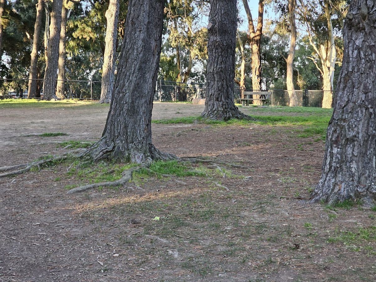 Price Park Fenced Dog Park in Australia offers a diverse and engaging environment for dogs and their owners. The park features a significant amount of space, including both large, open grassy fields perfect for running and more shaded, wooded sections with mature trees. The entire area is secured by chain-link fencing, providing a safe off-leash environment. One of the standout features is the variety of agility equipment available, such as ramps, tunnels, slalom poles, and hurdles, alongside natural play elements like logs and rocks. For owners, several wooden benches are scattered throughout the park, offering places to rest under the ample natural shade provided by the canopy. The ground surface is a mix of well-maintained grass in the open areas and a combination of dirt, mulch, and gravel in the more high-traffic or wooded sections. The presence of unique touches, like a decorative fairy door on a tree stump, adds to the park's charming and community-focused atmosphere. While the images don't explicitly show water stations or toilets, the park's size and specialized equipment make it a premier destination for local dog owners seeking exercise and socialization.