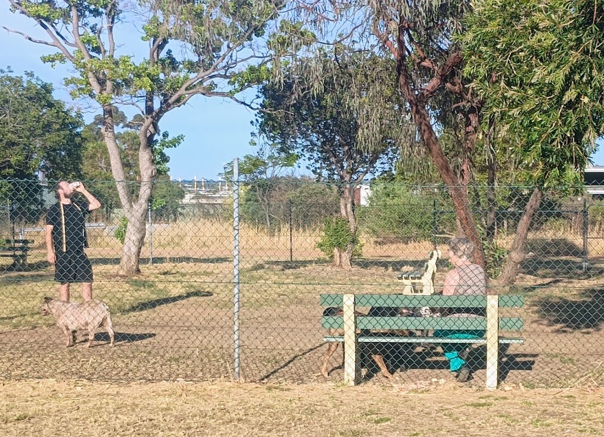 Reasonable sized park, with a gazebo and park bench for seating and shelter. There is some tree shading around the edge with slopes and different levels for dogs to experience. Mainly grass and sand fill where dogs have dug up the ground …