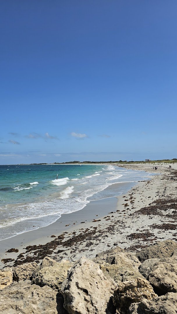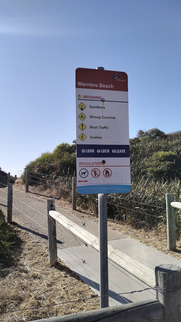 Warnbro Dog Beach is a sprawling and picturesque coastal destination located in Rockingham, Western Australia, offering a vast expanse of white sand and crystal-clear turquoise waters. This natural dog park provides a massive open space for pets to run, play, and swim, creating a serene and liberating atmosphere for both dogs and their owners. The primary ground surface is soft sand, which transitions into coastal scrub and dunes protected by simple post-and-wire fencing along the access paths. While the beach itself lacks traditional park facilities like benches, trash cans, or agility equipment, its main draw is the expansive, unobstructed shoreline. Signage at the entrance clearly delineates the dog-friendly zones, indicating that off-leash exercise is permitted in designated areas. There is no visible shade or lighting, so visitors should plan for sun exposure. The beach is particularly renowned for its stunning sunsets, providing a beautiful backdrop for evening walks. Overall, it is a minimalist, nature-focused dog exercise area that prioritizes the natural beauty of the Australian coastline over man-made amenities.